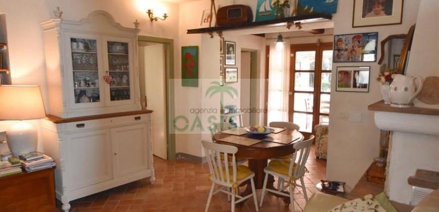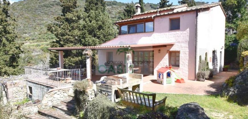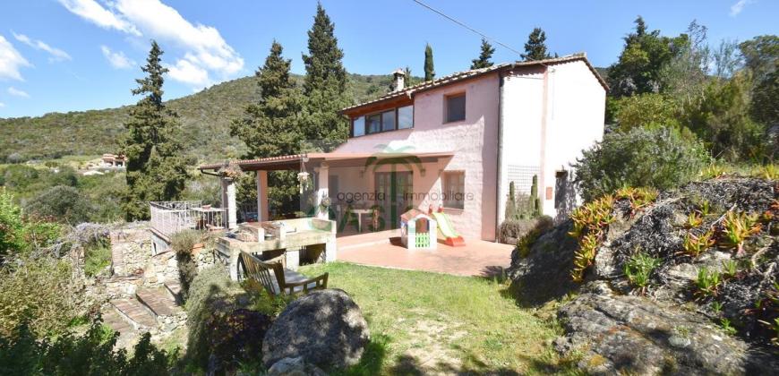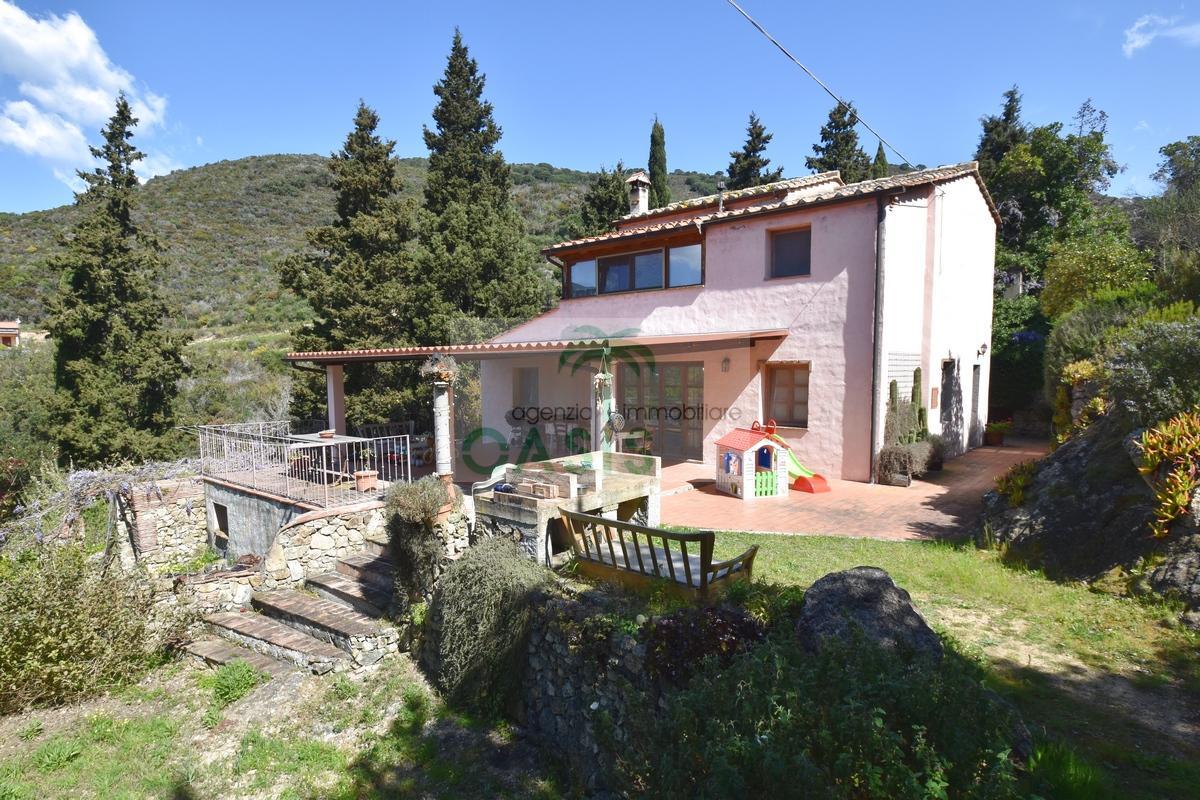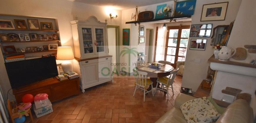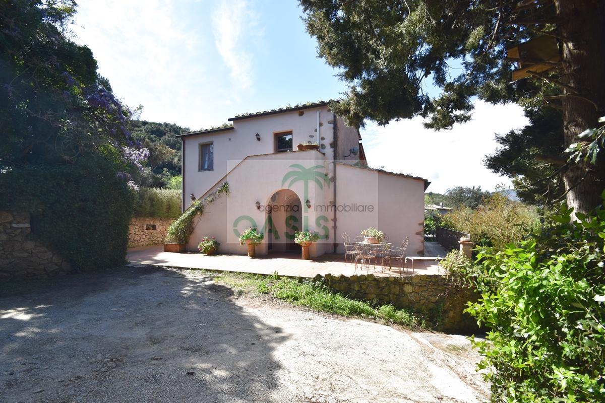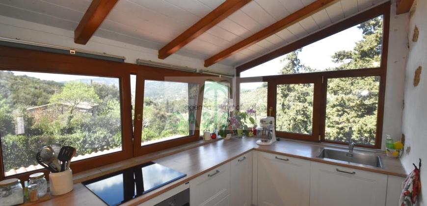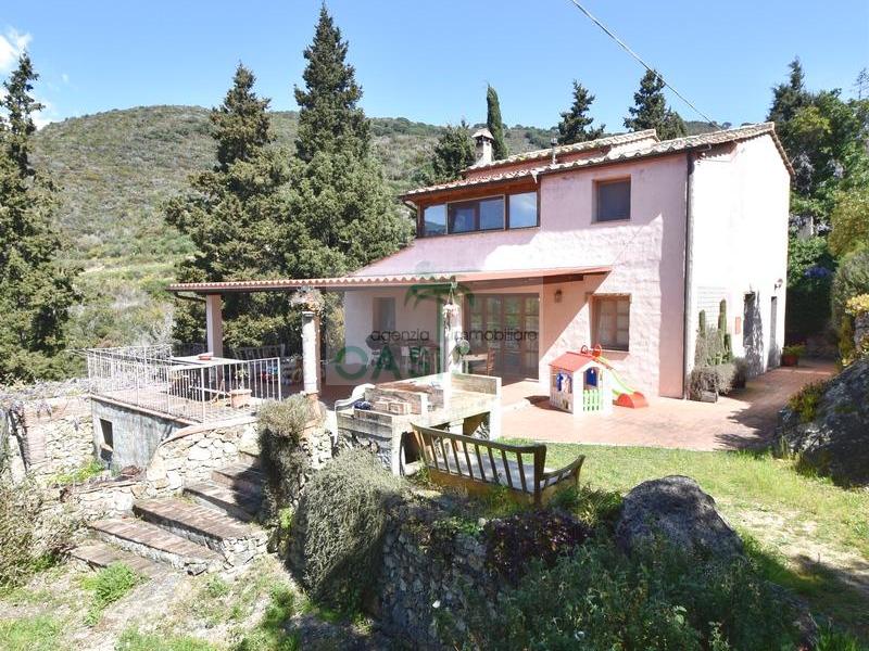Immerso nel verde della macchia mediterranea, in posizione dominante completamente indipendente, con terreno circostante e terrazza coperta - Tipico casale recentemente ristrutturato con ottime finiture, disposto su due livelli e composto al piano terra da spazioso salone con caminetto, cucinotto finestrato, 1° bagno con finestra e completo di tutti i sanitari, n.2 camere da letto, al piano primo da soggiorno, cucina, 3° camera da letto e 2° bagno anch'esso finestrato e completo di tutti i sanitari. Termoautonomo.