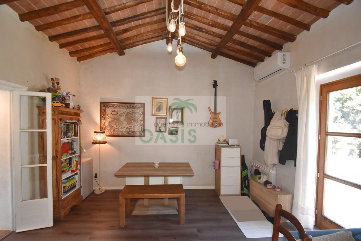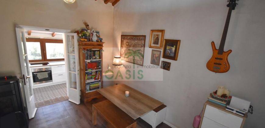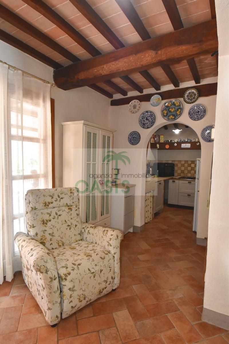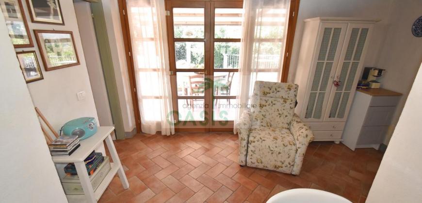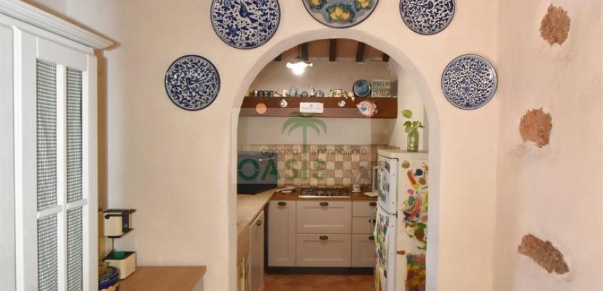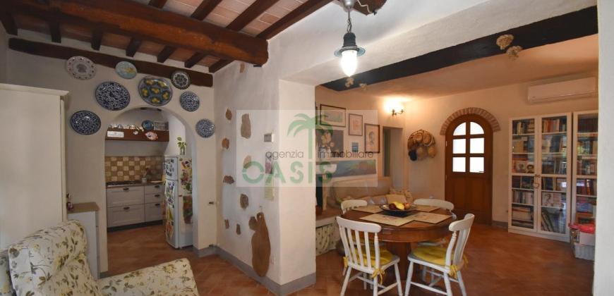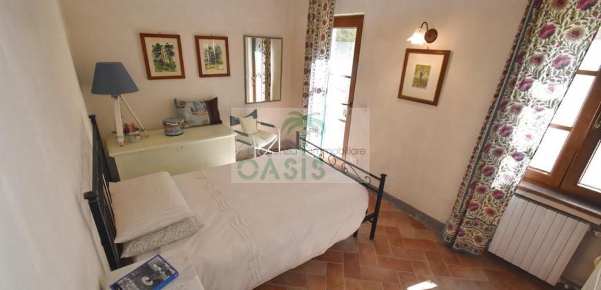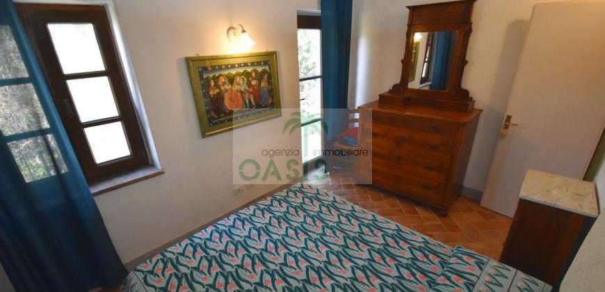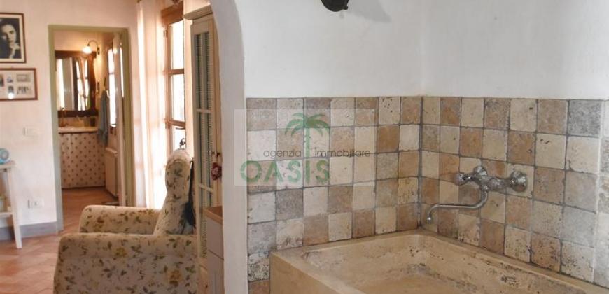 Immerso nel verde della macchia mediterranea, in posizione dominante completamente indipendente, con terreno circostante e terrazza coperta - Tipico casale recentemente ristrutturato con ottime finiture, disposto su due livelli e composto al piano terra da spazioso salone con caminetto, cucinotto finestrato, 1° bagno con finestra e completo di tutti i sanitari, n.2 camere da letto, al piano primo da soggiorno, cucina, 3° camera da letto e 2° bagno anch'esso finestrato e completo di tutti i sanitari. Termoautonomo.
